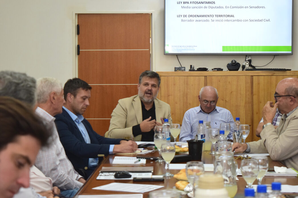 Entre otros, participaron Matías Martiarena, director de la Federación Agraria Argentina; Ronald Garnier, presidente de Fedeco; Nicasio Tito, titular de la Federación de Asociaciones Rurales de Entre Ríos; Juan Diego Etchevehere, director de Sociedad Rural Argentina; y Juan Balbi, de Cooperativas Agropecuarias Federadas. Junto al ministro estuvieron Daniel Rodríguez, coordinador General del Ministerio; Raúl Boc-Ho, secretario de Agricultura, Ganadería y Pesca; su subsecretario Juan Carlos Basaldúa; y los directores de Producción Animal y Agricultura, Martín Sieber y Gustavo Oertlin.