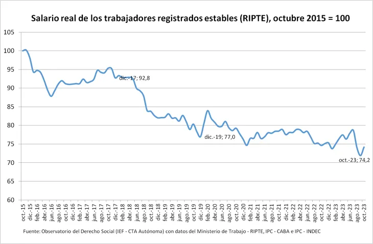 El indicador todavía se encuentra por debajo de índice de diciembre de 2019 (pre pandemia), según informó Luis Campos, coordinador del Observatorio del Derecho Social en el Instituto de Estudios y Formación de la CTA – Autónoma. En tanto, el los salarios acumulan una caída de más del 25% contra 2015.