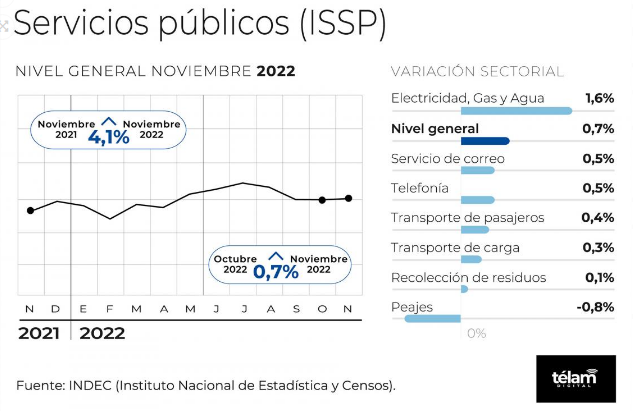 La utilización de servicios públicos durante noviembre pasado aumentó 4,1% respecto al mismo mes del 2021, informó este miércoles el Instituto Nacional de Estadística y Censos (Indec).