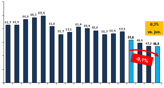 Según las estadísticas de la entidad, en julio de este año, el promedio móvil de doce meses del consumo de carne vacuna por habitante y por año fue de 46,9 kilos. Una de las cifras más bajas de las que se tenga registro.